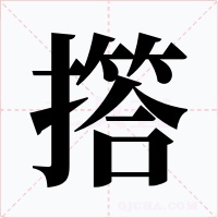 “撘” 字共有 15 画,拼音:dā,注音:ㄉㄚ,部首:扌,笔画数:15 画,字体结构:左右结构,五行:火,五笔:RTWK,Unicode编码:U+6498,郑码:DMAJ,仓颉:QHOR,“撘”字笔顺为:一丨一ノ一丶ノ一丶ノ丶一丨フ一