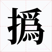 又如:撝戈反日(执戈挥动,使太阳为之反行。后用以赞扬坚强勇敢的战士能排除万难,扭转乾坤,转败为胜);撝叱(挥斥);撝呵(挥斥)