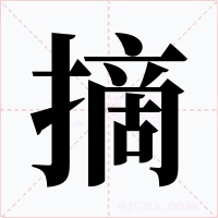 又如:摘句(摘录文章诗歌之句);摘钞(择要抄录);摘句寻章(摘取搜寻文章的片断词句。指读书局限于文字的推求)
