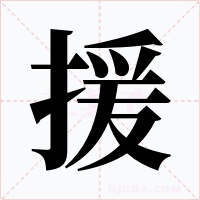 又如:抗美援朝;援手(伸手拉人一把以解救其困厄);援拯(援救,帮助);援应(声援接应)