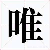 “唯” 字共有 11 画,拼音:wéi,注音:ㄨㄟˊ,部首:口,笔画数:11 画,字体结构:左右结构,五行:土,五笔:KWYG,Unicode编码:U+552F,郑码:JNI,仓颉:ROG,“唯”字笔顺为:丨フ一ノ丨丶一一一丨一