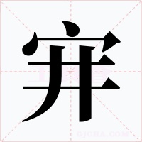 “宑” 字共有 7 画,拼音:jǐng,注音:ㄐㄧㄥˇ,部首:宀,笔画数:7 画,字体结构:上下结构,五行:火,五笔:PFJJ,Unicode编码:U+5B91,郑码:WDBN,仓颉:JTT,“宑”字笔顺为:丶丶フ一一ノ丨