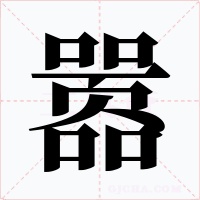 又如:嚣争(吵闹;争夺);嚣湫(尘嚣渊隘);嚣鄙(喧闹鄙俗);嚣号(喧嚷)