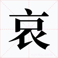 又如:哀咜(悲哀叹息);哀诏(皇上驾崩后,新君通告全国的文书);哀哉(表示悲伤或痛惜的感叹词);哀毁骨立(形容对父母的故去非常悲哀,以致瘦得皮包骨了)