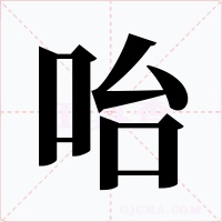 又如:咍口(笑口);咍咍(欢笑的样子);咍噱(欢笑)