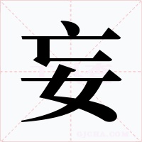“妄” 字共有 6 画,拼音:wàng,注音:ㄨㄤˋ,部首:女,笔画数:6 画,字体结构:上下结构,五行:火,五笔:YNVF,Unicode编码:U+5984,郑码:SHZM,仓颉:YVV,“妄”字笔顺为:丶一フフノ一