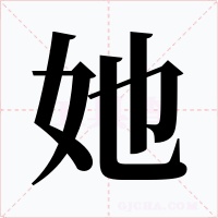 用于女性第三人称;亦用以代称国家,山河,旗帜等,表示敬爱。
