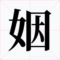 (会意兼形声。从女,从因,因亦声。本义:女婿家)