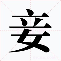 (会意。从辛,从女。甲骨文字形上面是“ň”(qiān)字,即古代刑刀,表示有罪,受刑。下面是“女”字。合而表示有罪的女子。本义:女奴)