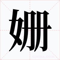“姗” 字共有 8 画,拼音:shān,注音:ㄕㄢ|ㄕㄢˋ,部首:女,笔画数:8 画,字体结构:左右结构,五行:金,五笔:VMMG,Unicode编码:U+59D7,郑码:ZMQA,仓颉:VBBM,“姗”字笔顺为:フノ一ノフノフ一