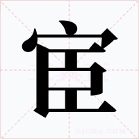 (会意。从宀mián,表示与家庭房屋有关。从臣。“臣”本奴隶。合起来的意思是家室奴仆。本义:做奴隶主或帝王的奴仆)