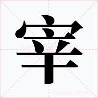 又如:宰世(掌管、治理天下);宰民(掌治民众);宰匠(主宰;掌治);宰肉(未遇时怀有大志;从处理小事中可以看出治理国家的才能);宰摄(主宰);宰总(犹主宰);宰席(主席的地位);宰匠;宰主(主宰者)