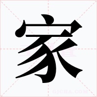 (会意。甲骨文字形,上面是“宀”(mián),表示与室家有关,下面是“豕”,即猪。古代生产力低下,人们多在屋子里养猪,所以房子里有猪就成了人家的标志。本义:屋内,住所)