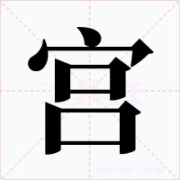 房屋(封建时代专指帝王的住所):宫室。宫廷。宫殿。宫观(gu刵 )(a.供帝王游乐的离宫;b.道教的庙宇)。宫禁。宫苑。宫刑。