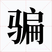 “骗” 字共有 12 画,拼音:piàn,注音:ㄆㄧㄢˋ,部首:马,笔画数:12 画,字体结构:左右结构,五行:水,五笔:CYNA,Unicode编码:U+9A97,郑码:XWLD,仓颉:NMISB,“骗”字笔顺为:フフ一丶フ一ノ丨フ一丨丨