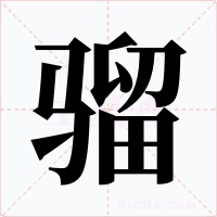 “骝” 字共有 13 画,拼音:liú,注音:ㄌㄧㄡˊ,部首:马,笔画数:13 画,字体结构:左右结构,五行:火,五笔:CQYL,Unicode编码:U+9A9D,郑码:XRYK,仓颉:NMHHW,“骝”字笔顺为:フフ一ノフ丶フノ丨フ一丨一