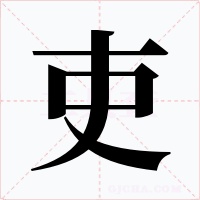 (会意。甲骨文。从手(又),从中。以手持中。有人认为中为笔。“吏”、“事”、“使”古同字。本义:官吏)