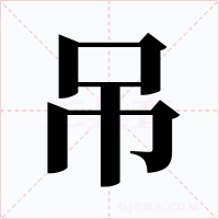 (吊为弔的俗字。会意。甲骨文字形,象人持弋射矰(zēng)缴之形。古人死而不葬,只是放在荒野里用柴薪盖着,但怕禽兽要来吃,连送丧的亲友都带着弓箭前来帮助驱除。本义:悼念死者)