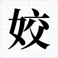 “姣” 字共有 9 画,拼音:jiāo,注音:ㄐㄧㄠ|ㄒㄧㄠˊ,部首:女,笔画数:9 画,字体结构:左右结构,五行:木,五笔:VUQY,Unicode编码:U+59E3,郑码:ZMOO,仓颉:VYCK,“姣”字笔顺为:フノ一丶一ノ丶ノ丶