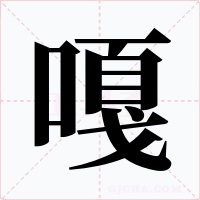 (形声。从口,戛(jiá)声。象声词)形容短促而响亮的声音〖screech〗。如:嘎支;嘎嘎笑声;鸭叫声;嘎杂子(蛮不讲理的人)