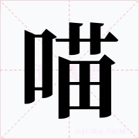 “喵” 字共有 11 画,拼音:miāo,注音:ㄇㄧㄠ,部首:口,笔画数:11 画,字体结构:左右结构,五行:水,五笔:KALG,Unicode编码:U+55B5,郑码:JEKI,仓颉:RTW,“喵”字笔顺为:丨フ一一丨丨丨フ一丨一