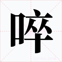 “啐” 字共有 11 画,拼音:cuì,qi,注音:ㄘㄨㄟˋ|ㄑㄧ,部首:口,笔画数:11 画,字体结构:左右结构,五行:金,五笔:KYWF,Unicode编码:U+5550,郑码:JSOE,仓颉:RYOJ,“啐”字笔顺为:丨フ一丶一ノ丶ノ丶一丨