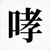 (形声。从口,孝声。本义:野兽的吼声)