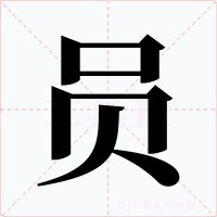(会意。甲骨文字形,表示俯视鼎,看到鼎口是圆形的。小篆从贝,口声。本义:物的数量;人员的数额。亦指人员)