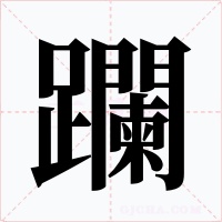 “躝” 字共有 24 画,拼音:lán,注音:ㄌㄢˊ,部首:足,笔画数:24 画,字体结构:左右结构,五行:火,五笔:KHUI,Unicode编码:U+8E9D,郑码:JIFL,仓颉:RMANW,“躝”字笔顺为:丨フ一丨一丨一丨フ一一丨フ一一一丨フ丶ノ一丨ノ丶