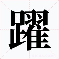 “躍” 字共有 21 画,拼音:yuè,注音:ㄩㄝˋ,部首:足,笔画数:21 画,字体结构:左右结构,五行:火,五笔:KHNY,Unicode编码:U+8E8D,郑码:JIYN,仓颉:RMSMG,“躍”字笔顺为:丨フ一丨一丨一フ丶一フ丶一ノ丨丶一一一丨一