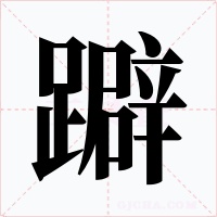 “躃” 字共有 20 画,拼音:bì,注音:ㄅㄧˋ,部首:足,笔画数:20 画,字体结构:左右结构,五行:水,五笔:KHNU,Unicode编码:U+8E83,郑码:JIJS,仓颉:RMSRJ,“躃”字笔顺为:丨フ一丨一丨一フ一ノ丨フ一丶一丶ノ一一丨