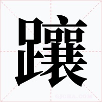 “躟” 字共有 24 画,拼音:ráng,注音:ㄖㄤˊ,部首:足,笔画数:24 画,字体结构:左右结构,五行:火,五笔:KHYE,Unicode编码:U+8E9F,郑码:JIER,仓颉:RMYRV,“躟”字笔顺为:丨フ一丨一丨一丶一丨フ一丨フ一一一丨丨一ノフノ丶