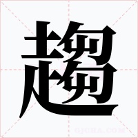 “趨” 字共有 17 画,拼音:qū,cù,注音:ㄑㄩ,ㄘㄨˋ,部首:走,笔画数:17 画,字体结构:左下包围结构,五行:火,五笔:FHQT,Unicode编码:U+8DA8,郑码:BORZ,仓颉:GOPUU,“趨”字笔顺为:一丨一丨一ノ丶ノフフ丨ノノフフ丨ノ