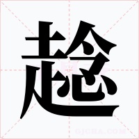 “趝” 字共有 15 画,拼音:jiàn,注音:ㄐㄧㄢˋ,部首:走,笔画数:15 画,字体结构:左下包围结构,五行:火,五笔:FHWN,Unicode编码:U+8D9D,郑码:BOXW,仓颉:GOOIP,“趝”字笔顺为:一丨一丨一ノ丶ノ丶丶フ丶フ丶丶