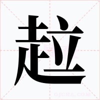 “趇” 字共有 12 画,拼音:xì,注音:ㄒㄧˋ,部首:走,笔画数:12 画,字体结构:左下包围结构,五行:金,五笔:FHUD,Unicode编码:U+8D87,郑码:BOSU,仓颉:GOYT,“趇”字笔顺为:一丨一丨一ノ丶丶一丶ノ一