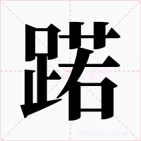 “蹃” 字共有 15 画,拼音:nuò,注音:ㄋㄨㄛˋ,部首:足,笔画数:15 画,字体结构:左右结构,五行:火,五笔:KHAK,Unicode编码:U+8E43,郑码:JIGJ,仓颉:RMTKR,“蹃”字笔顺为:丨フ一丨一丨一一丨丨一ノ丨フ一