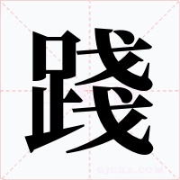 “踐” 字共有 15 画,拼音:jiàn,注音:ㄐㄧㄢˋ,部首:足,笔画数:15 画,字体结构:左右结构,五行:火,五笔:KHAA,Unicode编码:U+8E10,郑码:JIHH,仓颉:RMII,“踐”字笔顺为:丨フ一丨一丨一一フノ丶一フノ丶