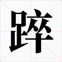 “踤” 字共有 15 画,拼音:zú,注音:ㄗㄨˊ,部首:足,笔画数:15 画,字体结构:左右结构,五行:火,五笔:KHYF,Unicode编码:U+8E24,郑码:JIOE,仓颉:RMYOJ,“踤”字笔顺为:丨フ一丨一丨一丶一ノ丶ノ丶一丨