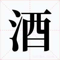 (会意。从水,从酉(yǒu)。“酉”本义就是酒。“酉”亦兼表字音。本义:用高粱、大麦、米、葡萄或其他水果发酵制成的饮料)
