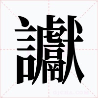 “讞” 字共有 27 画,拼音:yàn,注音:ㄧㄢˋ,部首:言,笔画数:27 画,字体结构:左右结构,五行:金,五笔:YHAD,Unicode编码:U+8B9E,郑码:SIGS,仓颉:YRYBK,“讞”字笔顺为:丶一一一丨フ一丨一フノ一フ一丨フ一丨フ丶ノ一丨一ノ丶丶