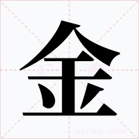 “金” 字共有 8 画,拼音:jīn,注音:ㄐㄧㄣ,部首:金,笔画数:8 画,字体结构:上下结构,五行:金,五笔:QQQQ,Unicode编码:U+91D1,郑码:PA,仓颉:C,“金”字笔顺为:ノ丶一一丨丶ノ一