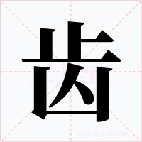 (象形。甲骨文,象嘴里的牙齿,象形字。战国文字在上面加了个声符“止”,成为形声字。小篆同。本义:牙)