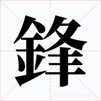 “鋒” 字共有 15 画,拼音:fēng,注音:ㄈㄥ,部首:釒,笔画数:15 画,字体结构:左右结构,五行:金,五笔:QTDH,Unicode编码:U+92D2,郑码:PRCI,仓颉:CHEJ,“鋒”字笔顺为:ノ丶一一丨丶ノ一ノフ丶一一一丨