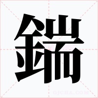 “鍴” 字共有 17 画,拼音:duān,注音:ㄉㄨㄢ,部首:釒,笔画数:17 画,字体结构:左右结构,五行:金,五笔:QMDJ,Unicode编码:U+9374,郑码:PLGL,仓颉:CUMB,“鍴”字笔顺为:ノ丶一一丨丶ノ一丨フ丨一ノ丨フ丨丨