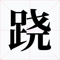 又如:跷蹄辇脚(高举脚,轻落足);跷着腿坐着;跷足(举足);跷腿(抬脚举步)