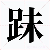 “跊” 字共有 12 画,拼音:mèi,注音:ㄇㄟˋ,部首:足,笔画数:12 画,字体结构:左右结构,五行:水,五笔:KHFI,Unicode编码:U+8DCA,郑码:JIBK,仓颉:RMJD,“跊”字笔顺为:丨フ一丨一丨一一一丨ノ丶