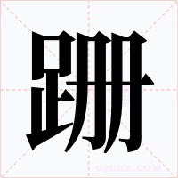 碰;跌〖stumble〗。如:跚破脚(跌破脚)