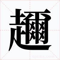 “趰” 字共有 21 画,拼音:ěr,注音:ㄦˇ,部首:走,笔画数:21 画,字体结构:左下包围结构,五行:火,五笔:FHGQ,Unicode编码:U+8DB0,郑码:BOOO,仓颉:GOMFB,“趰”字笔顺为:一丨一丨一ノ丶一ノ丶丨フ丨ノ丶ノ丶ノ丶ノ丶