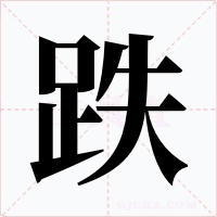 “跌” 字共有 12 画,拼音:diē,注音:ㄉㄧㄝ,部首:足,笔画数:12 画,字体结构:左右结构,五行:火,五笔:KHRW,Unicode编码:U+8DCC,郑码:JIMO,仓颉:RMHQO,“跌”字笔顺为:丨フ一丨一丨一ノ一一ノ丶