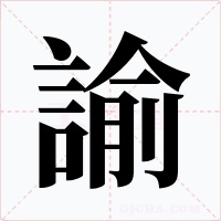 “諭” 字共有 16 画,拼音:yù,注音:ㄩˋ,部首:言,笔画数:16 画,字体结构:左右结构,五行:火,五笔:YWGJ,Unicode编码:U+8AED,郑码:SOQK,仓颉:YROMN,“諭”字笔顺为:丶一一一丨フ一ノ丶一丨フ一一丨丨